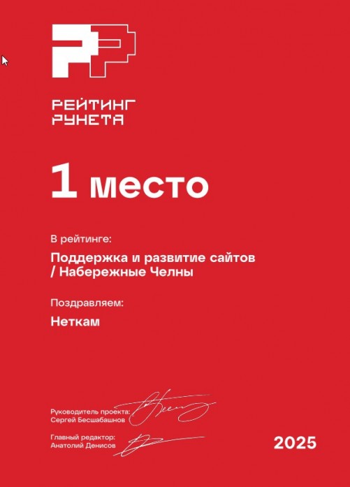 1 место в рейтинге веб-студий Набережных Челнов, занимающихся поддержкой и развитием сайтов. Премия Рейтинг Рунета — 2025.